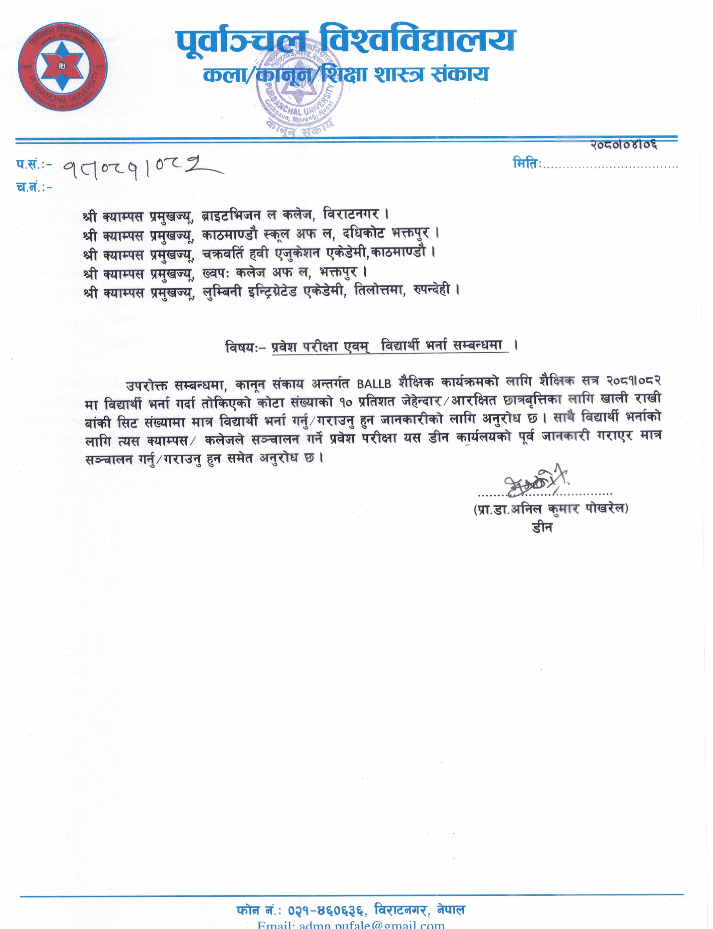 परीक्षा आवेदन फाराम भराई पठाईदिने बारे ।